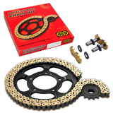 - Premium manufacturer front sprocket, rear sprocket and a precut Regina chain make a convenient kit...